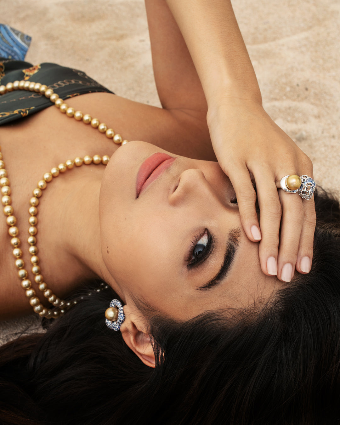 Wondrous creations inspired by the white petals of foam—each piece shimmers in hues reminiscent of the color of triumphant skies and the vibrant beings discovered in the water’s depths.