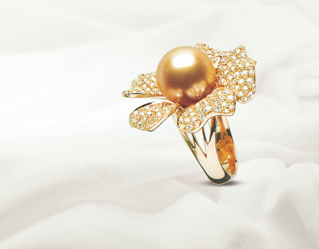 The Dolce Rosa ring, refined and sublime, is an ode to romance. Nestled in golden petals, a South Sea pearl shines with a passion for love and life in this exquisite creation.