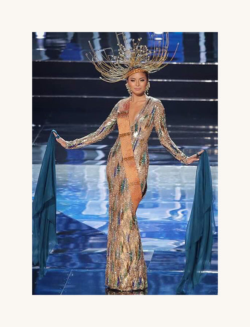 Maxine Medina, Miss Universe Philippines 2017, wore a headpiece created by Jewelmer as part of her national costume for the prestigious international pageant. Symbolic of the connection amidst the diversity in the country, the elegant arcs of the headpiece bloom into South Sea pearls – the Philippines’ national gem.